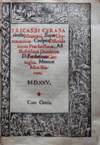 Este libro de Tricasso es su primera obra de quiromancia, publicada por primera vez en Venecia en 1522, en latín, y en 1524 en italiano, en 1524, con ediciones posteriores en 1534, 1535, 1543 —la edición a la que pertenece el ejemplar de Barcarrota—, 1544, 1546 y 1551. La obra se vertió asimismo al francés en 1546, con reediciones en 1552, 1561, 1583 y 1641.