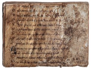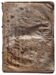El libro está encuadernado en tapa flexible de pergamino, una hoja muy dañada procedente de un códice del siglo XV en escritura gótica bastarda, que contenía el Hercules furens de Séneca (Sen. Herc. furens 340-360 en la parte interior; 375-385 en la parte exterior; a partir del v. 385 resulta ya ilegible). En el proceso de restauración, el libro fue desencuadernado y el pergamino y el papel estabilizados.