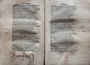 El único libro en francés de la Biblioteca de Barcarrota recoge buena parte de los textos que, publicados como panfletos entre 1536 y 1537, nutrieron la polémica (o différend) que enfrentó al célebre poeta Clément Marot, valet de chambre del rey Francisco I, con François Sagon y con Charles de La Hueterie.