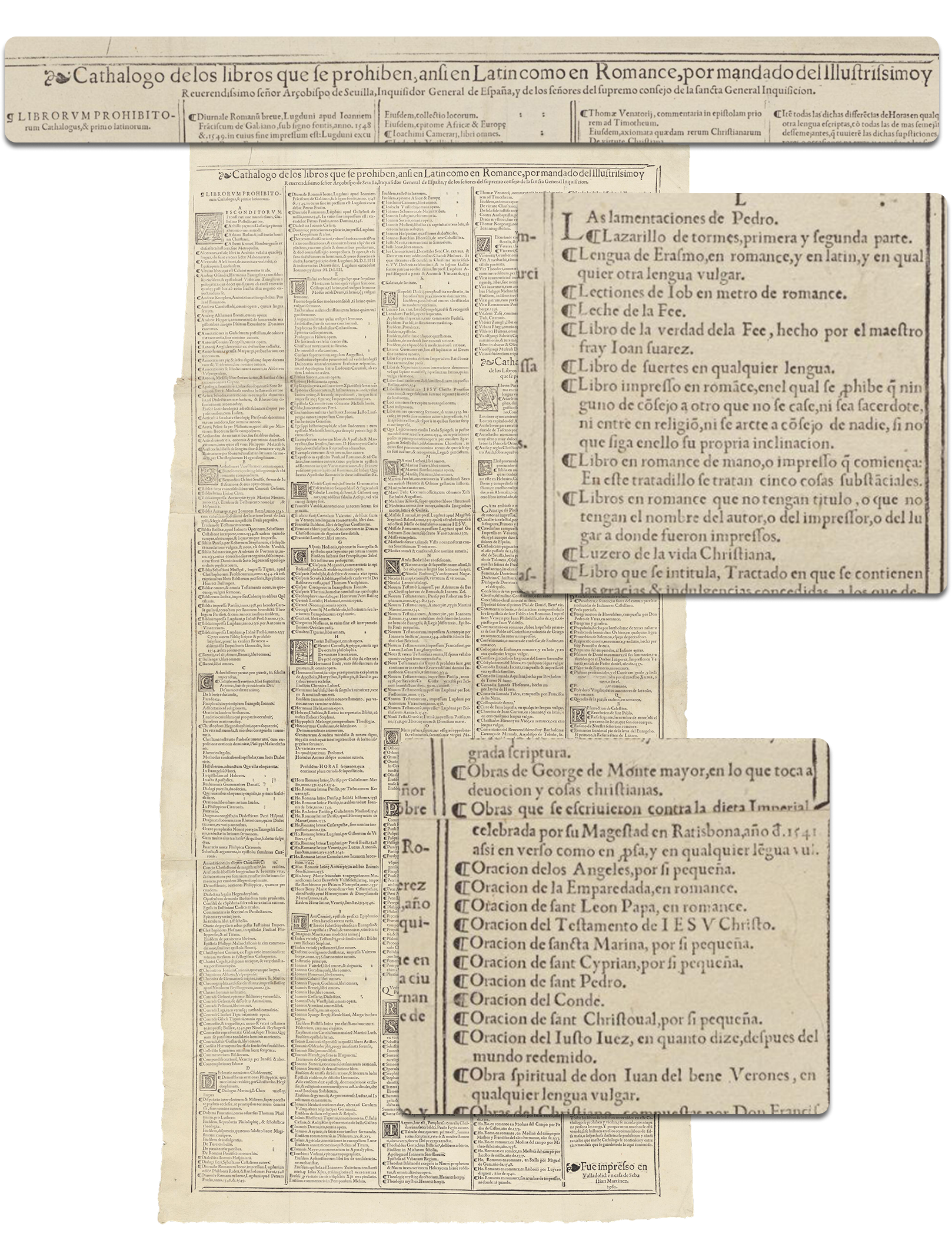 Cathálogo de los libros que se prohíben, ansí en latín como en romance (Valladolid, 1560). Versión en formato cartel del índice de libros prohibidos de Valdés. Houghton Library (Harvard University), p CB In23 1560